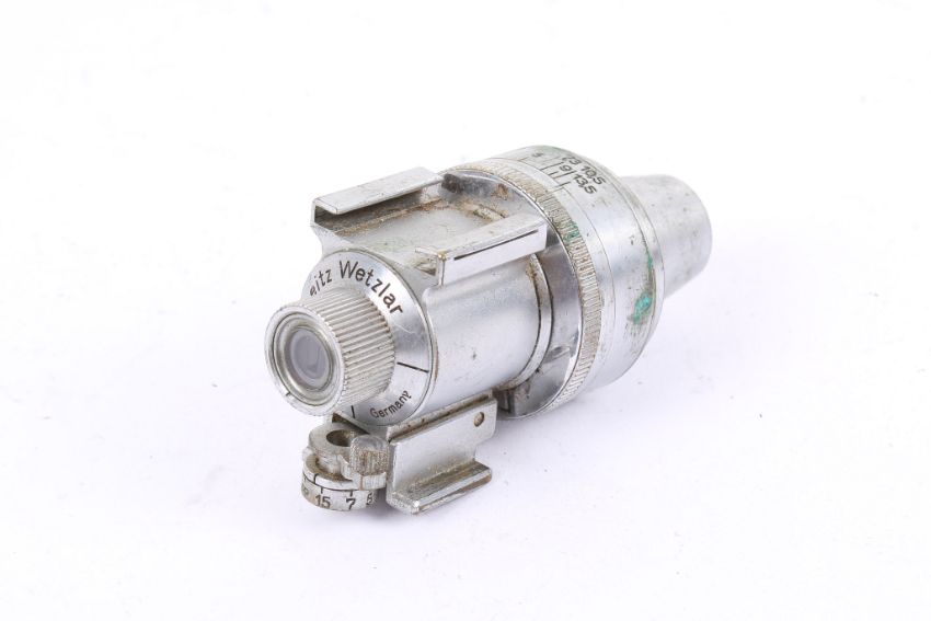 A Leitz VIDUM shoe-mount variable viewfinder. Chrome. Cover 3.5cm - 13.5cm. Together with makers case.