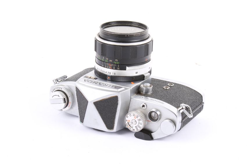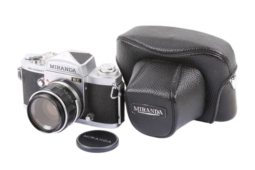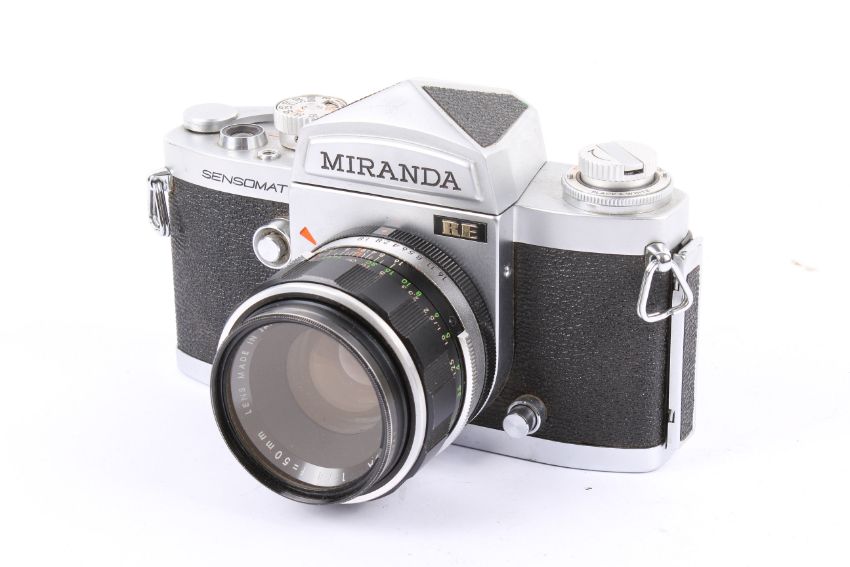 A Miranda Sensomat RE 35mm SLR camera. Chrome. With a Miranda 50mm f1.8 lens, cap and ERC. Shutter working.