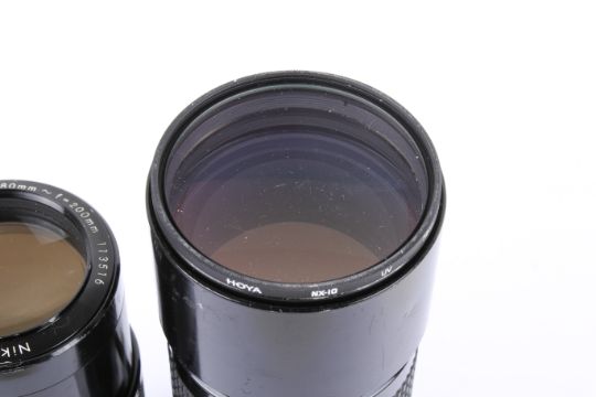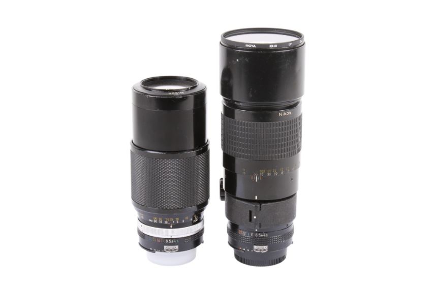 Two Nikon telephoto lenses. To include a Nikon Zoom-Nikkor Auto 80-200mm f4.5, and a Nikon Nikkor 300mm f4.5.