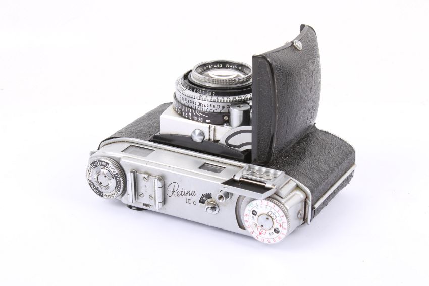 A Kodak Retina IIIc 35mm Rangefinder camera. Serial number 696981. With a Schneider-Kreuznach 50mm f2 Retina-Xenon lens. Together with ERC. Shutter not working.