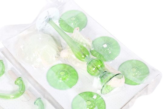 A contemporary Villaverde Serena Murano green glass branch ceiling pendant chandelier. Sealed in blister packs.