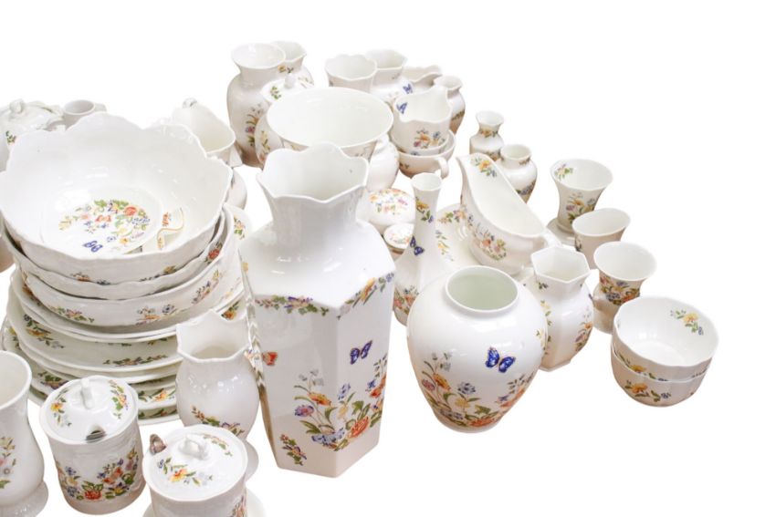 A large collection of assorted Aynsley Cottage Garden china items. Including vases, tureens and plates, etc. Max. H31cm