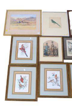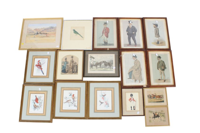 A collection of assorted pictures. Including V M Fitzroy watercolours and a selection of Vanity Fair caricatures prints, etc. All framed and glazed.