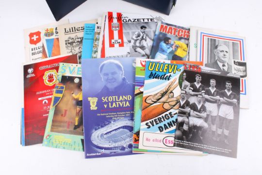 A collection of International and inter league football programmes. Including 1989 England vs Italy, 1971 Blackpool vs A.S. Roma, 1970 Swindon vs Juventus, 1966 Netherlands vs Belgium, 1959 Netherlands vs Norway, 1960 Belgium vs Switzerland, 1977 Barcelona vs Aston Villa, 1956 Germany vs Yugoslavia, 1966 Shamrock Rovers vs Waterford, 1958 Wales vs Israel and more