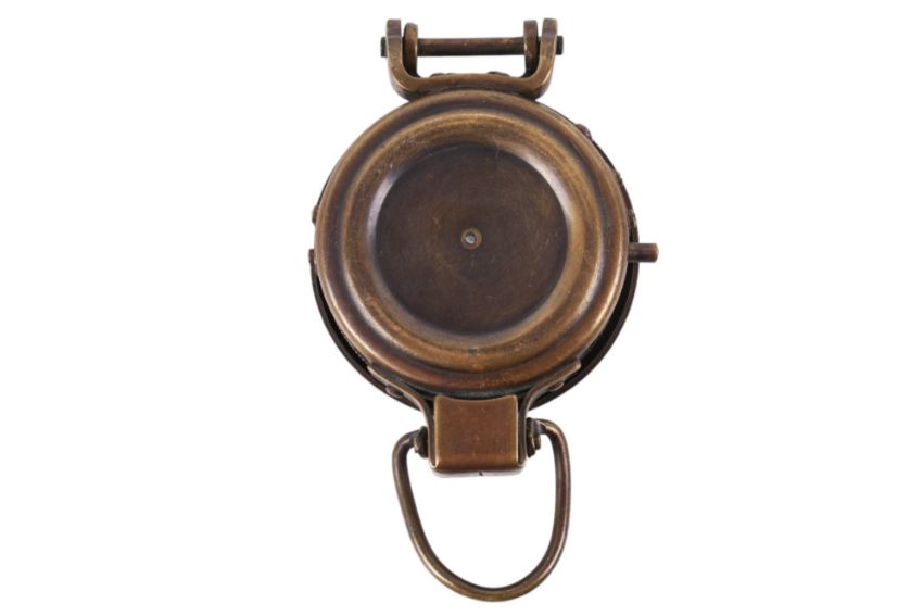 Five vintage police whistles and a WWII style compass. The whistle including The Metropolitan, Acme City Whistle, The City Whistle, etc.