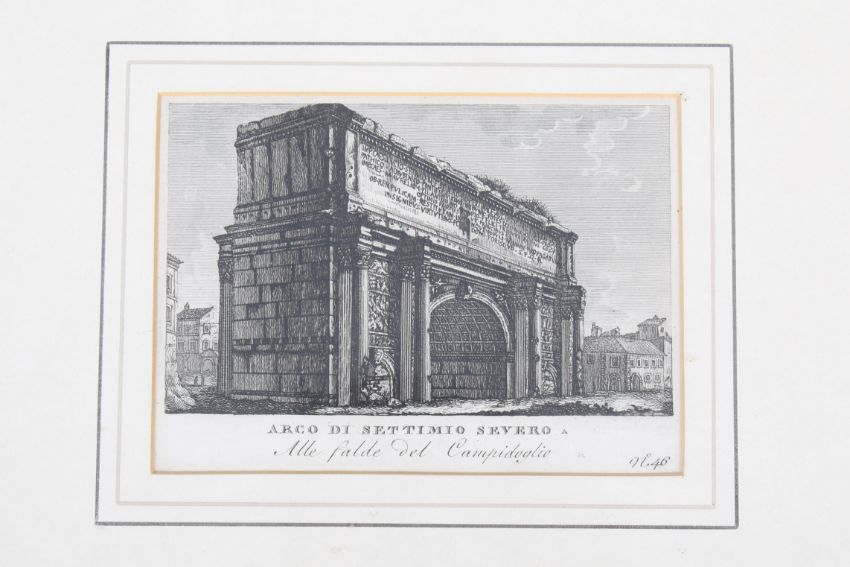 Three 19th century engravings of Italian monuments. Including the Colosseum, 14cm x 10cm, framed and glazed, 42cm x 38cm