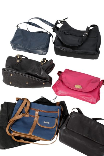 Overall in good condition. The majority show no significant damage or staining, some rubbing to the bases. At least two unbranded examples have cracks to the leather. The pink example has losses to the exterior and dark marks. The Geliler has some losses to the exterior. Some are dusty and would benefit from a clean.