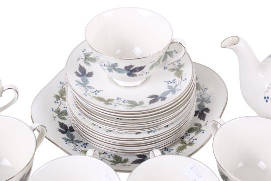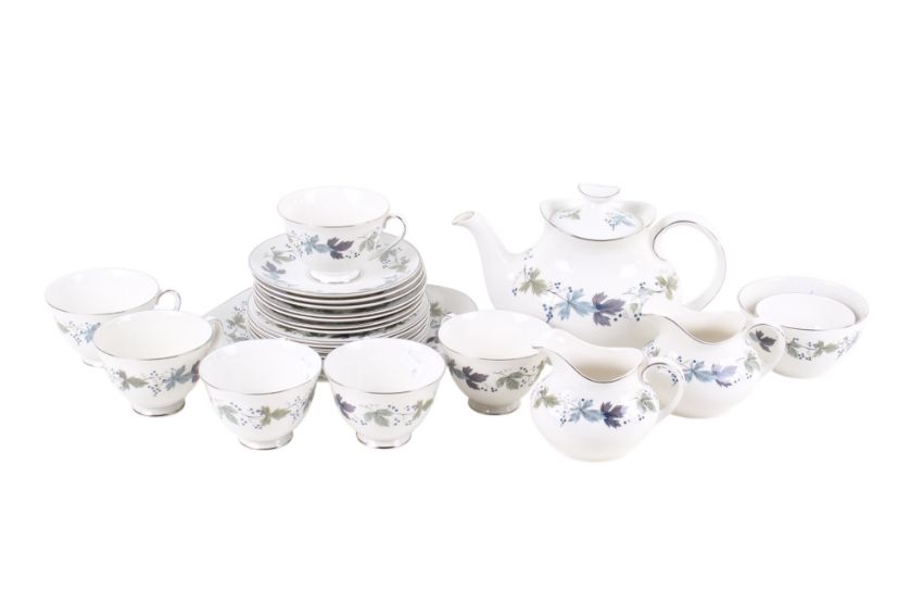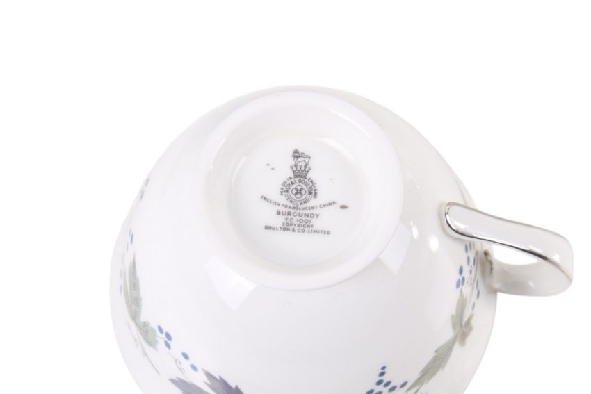 A Royal Doulton Burgundy TC 1001 tea set mostly for six. Including tea pot, two jugs. etc. Max. H16cm