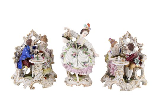 The 'dancing' lady has lost a couple of fingers on her right hand and the end of her shoe aswell as damage to her flower basket. The gentleman in the blue jacket has a small chip to ythe top of his head.