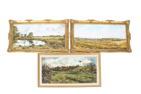 Elizabeth S. White (20th century) - three oils on canvas. Countryside landscapes, 100cm x 50cm, framed, 116cm x 66cm