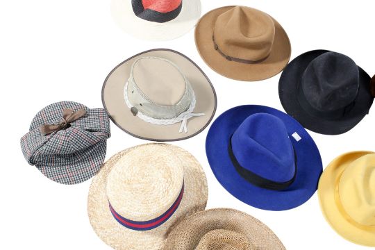 A large collection of assorted gentleman's winter and summer hats. Including trilby's, a boater and a top hat, all size L (7+)