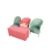 Four pieces of Lloyd Loom style furniture. Comprising a pink blanket box with a wooden lid, H45.5cm x W93cm x D39.5cm, a commode chair, painted green, a green chair and a pink chair, Max. H77cm