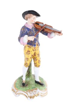 A 19th century Continental porcelain figure modelled as a violinist. Raised on a base with gilt decoration. H19cm (AF)