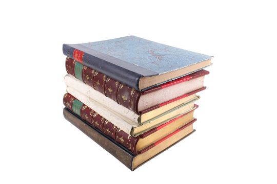 A box of six assorted vintage books mostly architectural design related. Including Racinet - Ornament Polychrome 2 vols Chromolithographs, etc.