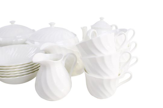 A part Wedgwood white dinner and tea service, mostly for six. Including tureens, tea pot and milk jug, etc. Max. H18cm