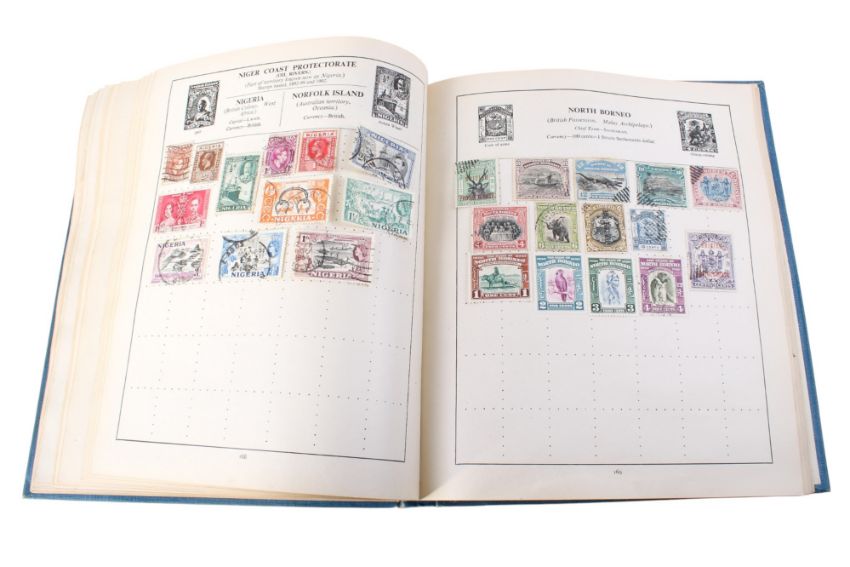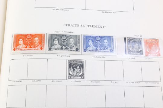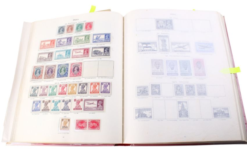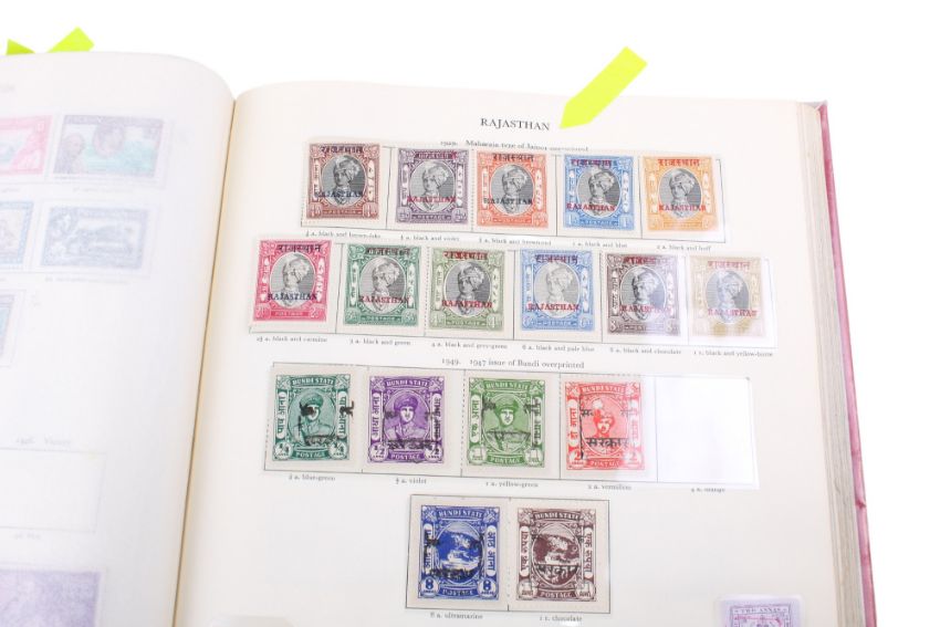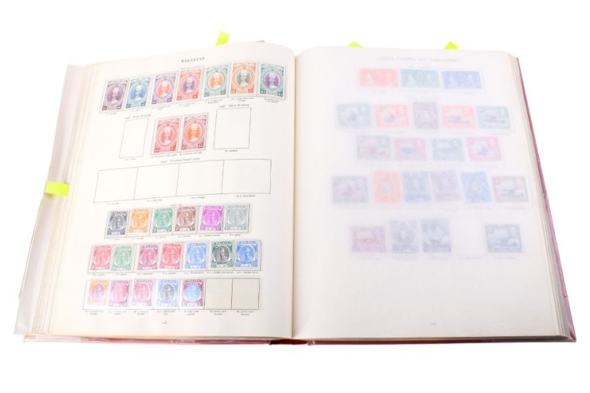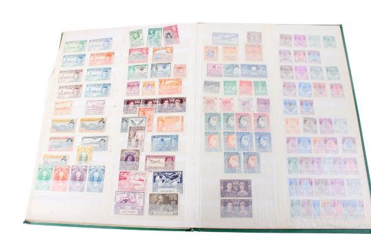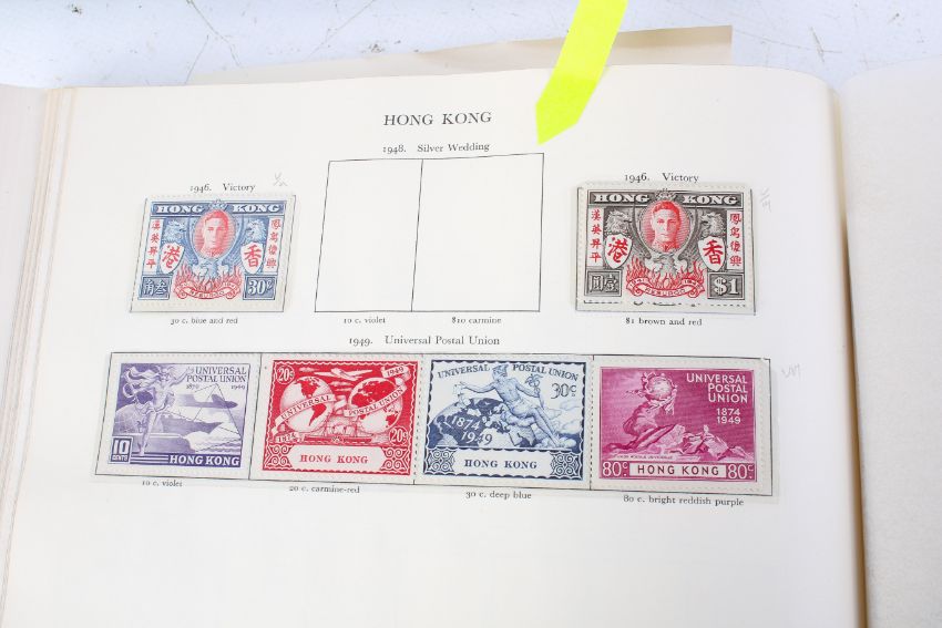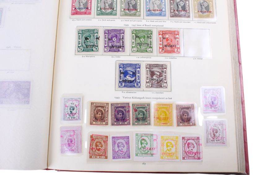 King George VI stamp album. Including Arden Dhow mint 5R unmounted, GB unmounted, Hong Kong complete good $10 unmounted but usual toning, India Gandhi lightly mounted, Kelantan 1939 to $5 (scuffy), New Hebridges 1938 set, good Rajasthan, many complete sets, a lot unmounted. Plus two other albums - bits and pieces, 1948 weddings, etc.