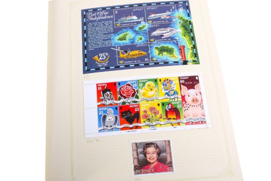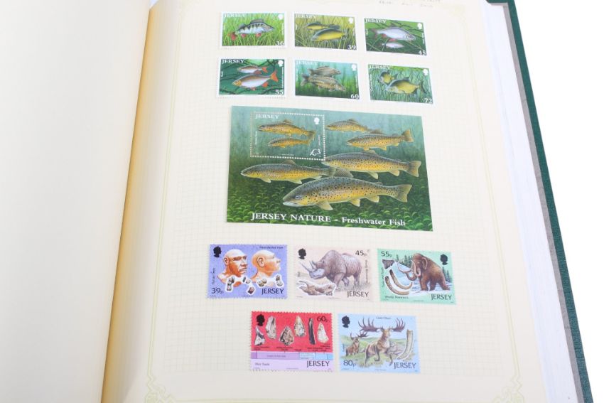 Four assorted stamp albums. Mostly empty, including one with a large collection of modern Jersey but mainly mounted