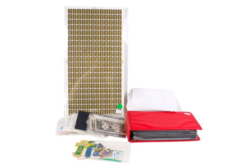 A collection of assorted world stamps. Including some mint Great Britain and early Peasedown postcards.