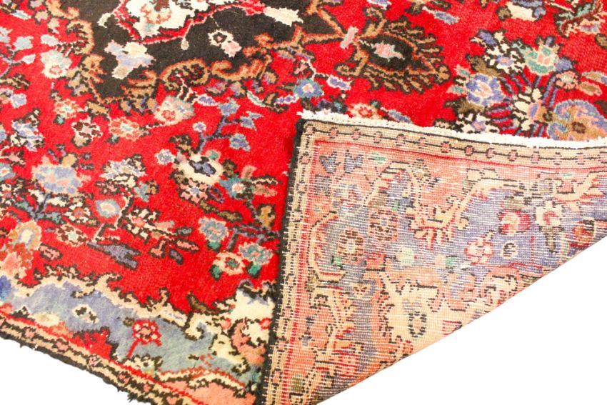 A Persian style wool rug on a red and blue ground. 225cm x 165cm