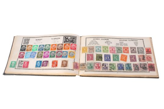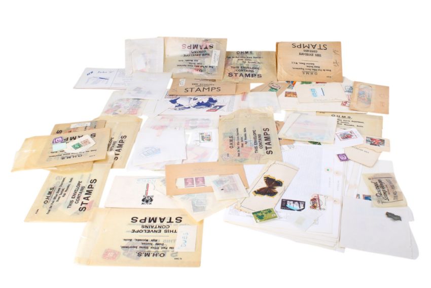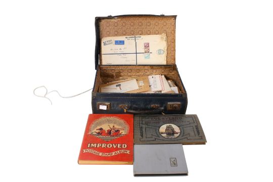 A collection of assorted world stamps, in a small suitcase.