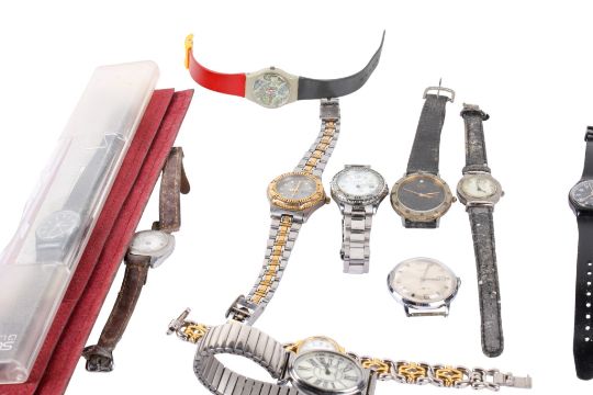A collection of wristwatches. Including a gentleman's Timex watch with a silvered dial, Arabic numeral and baton hour markers and a date aperture, in a stainless steel case, a lady's Rotary wristwatch, the grey dial with luminous hour markers, hands and a date aperture, in a stainless steel case, and more