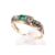 An 18ct diamond and emeral ring. The central emerald circa 4mm x 3mm, metal unmarked but tests as 18ct, size R, gross weight 3.4g.