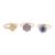 Three dress rings. Variously set with semi-precious stones and/or small diamonds or synthetics. Two hallmarked, tested as 9ct gold. Sizes M,N, N1/2, gross weight 6.4g.