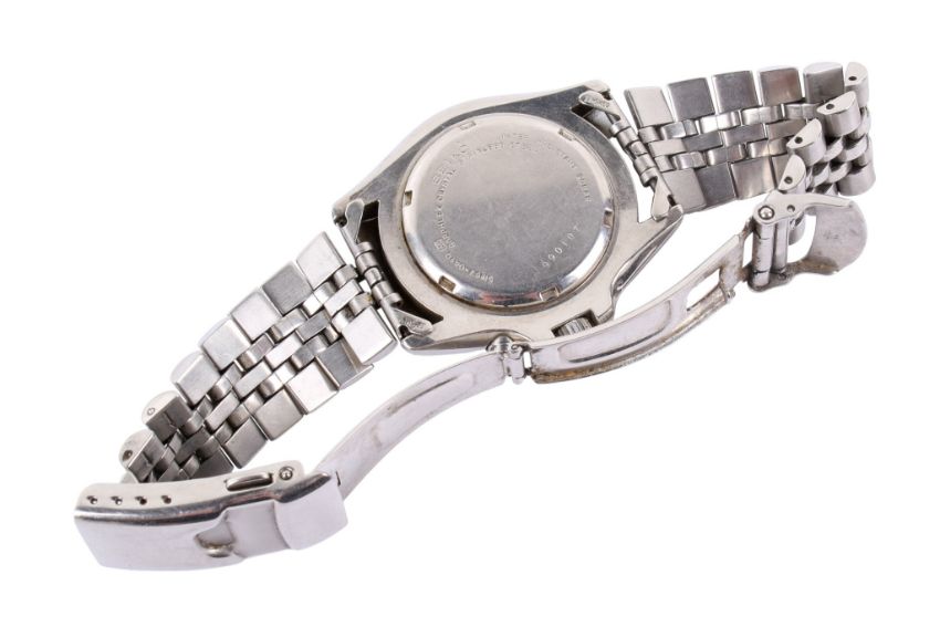 A gentleman's Seiko Kinetic wristwatch. The signed 'Water Resist' dial with dot markers, and a day/date aperture, with Pepsi style bezel surround, steel bracelet, 990107 5M63-0A10