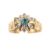 An 18ct gold ring. Set a small blue stone, probably zircon, in a flower form mount, the outer shank with textured design, hallmarked, size O1/2, gross weight 5g.
