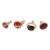 Four 9ct gold fobs. One modelled as a half freemason's sphere, two with eagle claws holding an orange sphere and a goldstone sphere, and one with a faceted smoky quartz bead in a scrolling pendant, all with full or partial hallmarks, gross weight 19.9g.