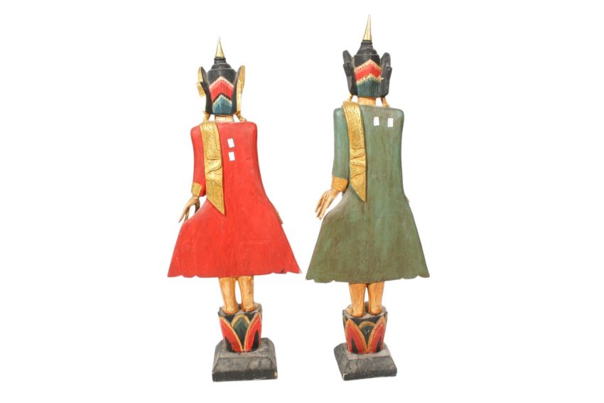 Pair of craved polychrome decorated south Asian temple figures. H113cm