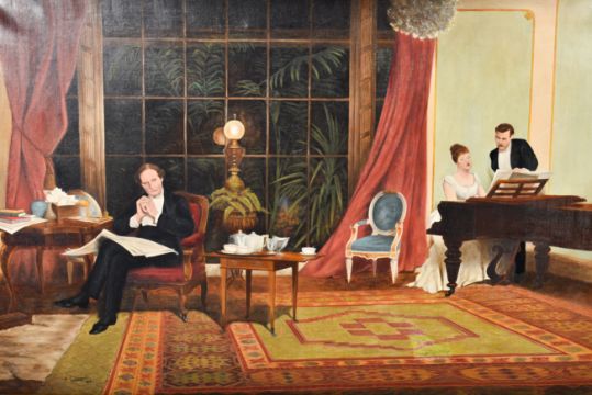 D C Morgan (19th Century) - The Piano Recital, oil on canvas. Signed and dated 1914, lower left, 105cm x 70cm, framed, 135cm x 101cm