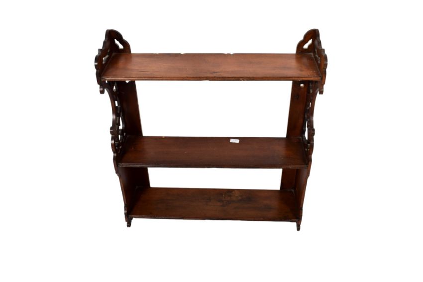Three items of house hold furniture. Including three tier wall shelf, a mirror and jardiniere stand. Max. H75cm