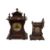 Two early 20th century wooden cased mantel clocks. One in the form of a castle tower, etc. Max. H37cm