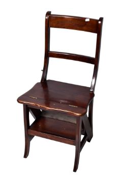 Reproduction mahogany finish metaphoric set of folding library steps / chair. H86cm