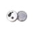 An Aquascutum duel time zone travel clock. One of the clocks having a white dial with Roman numerals, the other having a black dial with green Arabic numerals, contained within a hinged chromed metal circular case, diameter 5cm. Contained within a blue fabric pouch.
