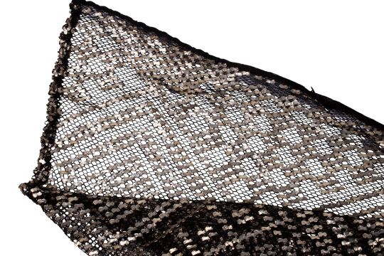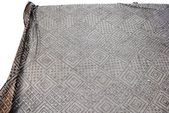 An Indian style white metal and black mesh shawl. With a geometric design, circa 100cm x 200cm.