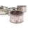 Ten 20th century white metal napkin rings. Comprising a set of five with gadrooned borders and pierced details, a set of three with ribbed borders, a single example with pierced scrolling decoration and a single example with floral decoration, gross weight 241.5g.