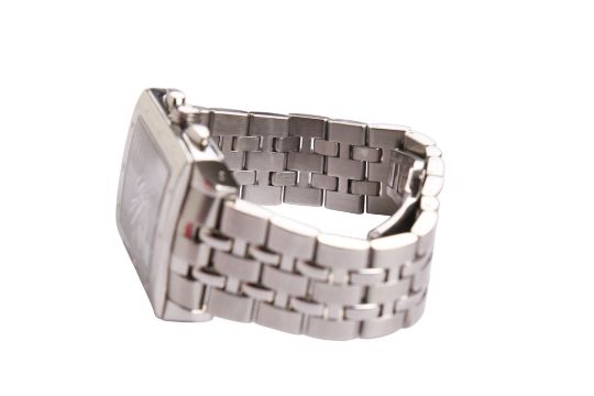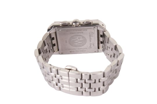 A gentleman's Raymond Weil Tango collection chronograph wristwatch. The grey dial with Roman numerals and three subsidiary dials and a date aperture, in a stainless steel case, quartz movement, Ref 4881, with a stainless steel bracelet, case diameter 3.3cm. In the original box with paperwork.