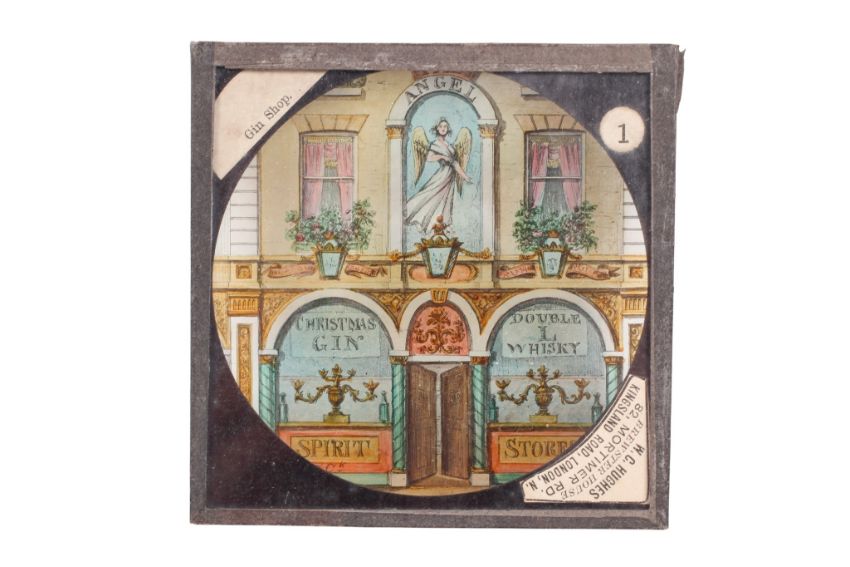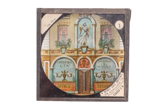 Six sets of Magic Lantern Slides. To include three boxed Primus Junior Lecturers' Series sets; 757(?) 'The Conquest of the Air, Aeroplanes. Chap.III'; 781 'British Battleships'; and 798 'Famous British Locomotives' (missing slide 4). Together with three further sets; 'The British Arctic Expedition 1875-76' slides 1-12; W.C.Hughes 'Gin Shop' slides 1-12; and 'Mrs Somebody' 1-7 with 4 similar examples. (58 slides).
