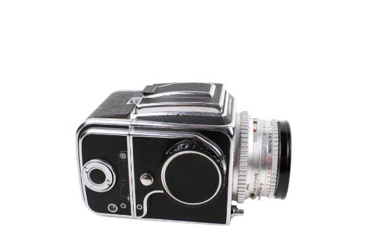 Hasselblad 500c medium format camera. Body no. TR79081, Carl Zeiss Planner lens 2-8 f80 no. 4488209, back no. TT105259 with extra no TR123399 also with macro ring (Hasselblad) and sun shade - with Hasselblad and Hoya filters also with an adaption ring for use with other filters in bag