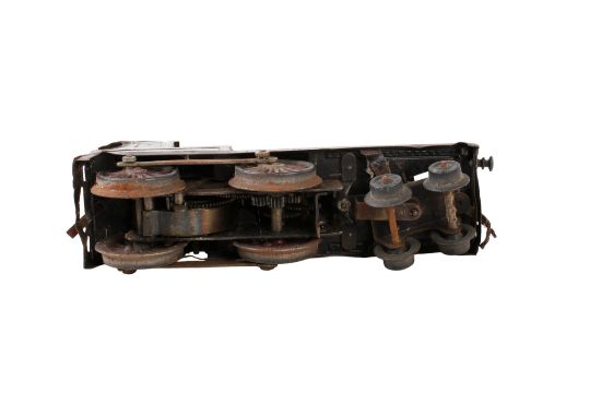 A Gebrüder Bing 0 gauge clockwork tank locomotive. 4-4-0, in green livery with a red-brown footplate and black/yellow detailing, no 410.