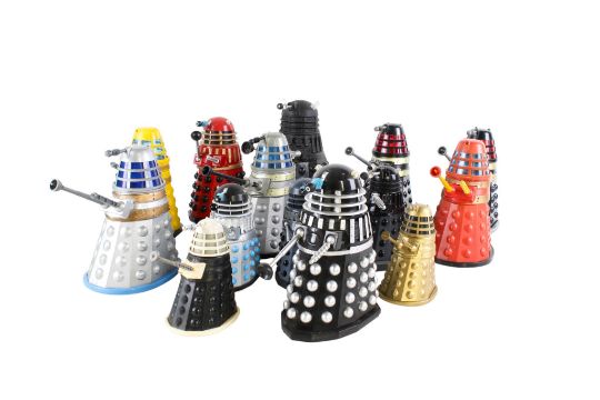 A collection of vintage Doctor Who Dalek models. Including six 1974 Marx Daleks, two 2001 Product Enterprise Ltd Daleks, two Character Options Ltd models and more.
