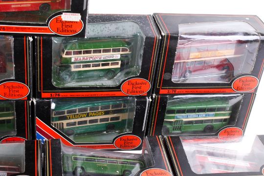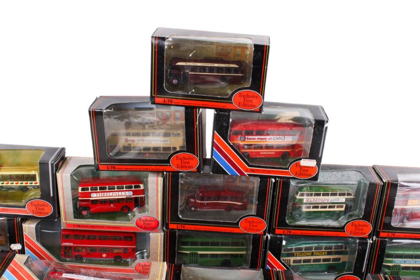 A collection of EFE 1:76 scale diecast buses and coaches. Including a No.30601 AEC Renown Bus 'King Alfred', No.28806 Leyland Titan 'East London Buses', No.19708 Regent E Orion 'Oxford' and more. All in the original boxes.