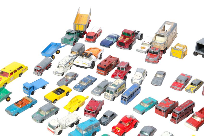 A collection of playworn Matchbox diecast vehicles. Including a Kingsize K-16 Dodge Tractor, King Size K-5 Racing Car Transporter, No.41 Ford G.T. and more.