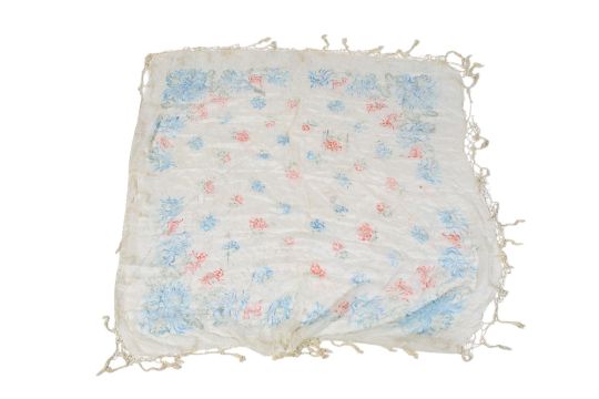 The painted example has some tears and thinning, mainly to the edges. Some of the tassels are broken and others frayed. Some small spots of discolouration. The embroidered example also has some snags and discolouration with loose threads, possible restoration to the embroidery.
