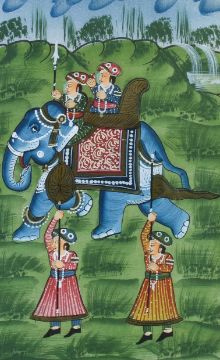 A group of three assorted Eastern gouache paintings. Two depicting elephants the other camels. Framed and glazed, Max. 47cm x 31cm.