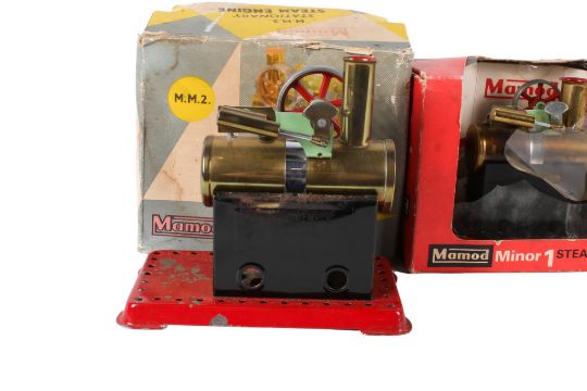 A Mamod Minor 1 engine and an MM2 engine, both in original boxes.