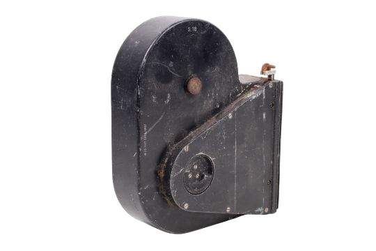 An Eclair Cameflex 35mm cine film magazine. Marked Ad Patt 0553 / 8927 and S.18 to the casing. Untested. Surface rust on some components.