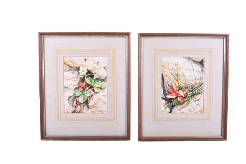 Two watercolour paintings of botanical subjects. Monogrammed 'JD' lower right, 12cm x 16cm, framed and glazed, 26cm x 31cm